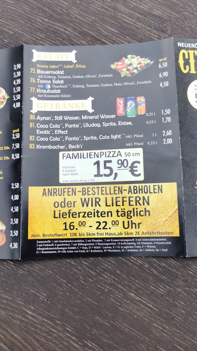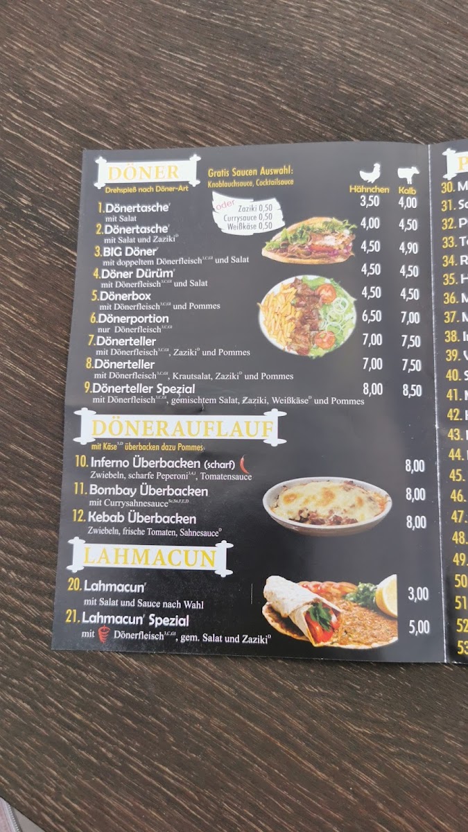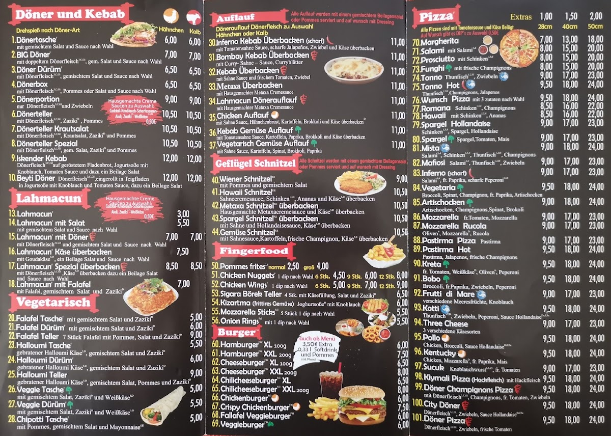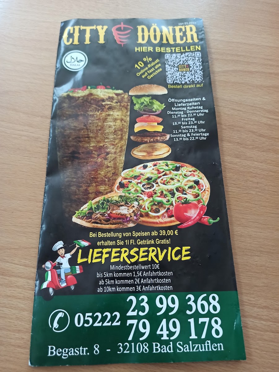 CITY DÖNER in Bad Salzuflen stands out as a top choice for authentic, flavorful döner and Turkish specialties. Their menu offers a variety of dishes, including tender kalbfleisch (veal) döner, crispy pommes frites, and the highly praised Lahmacun Spezial with succulent chicken. Every meal is freshly prepared without preservatives, highlighting their commitment to quality and halal standards. Customers rave about generous portions, speedy delivery, and the delicious balance of spices—especially the perfectly spiced, mildly spicy options. The handmade sauces add a rich depth, elevating each bite. Whether you choose to dine in, takeout, or order delivery within a 10 km radius, the friendly service complements an already impressive culinary experience. CITY DÖNER’s menu reflects authentic flavors with a modern touch, making it a must-visit gem in the Lips region for those seeking genuine, satisfying Turkish cuisine.